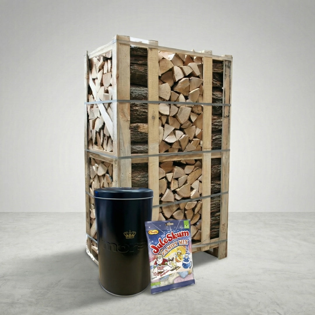 Black Week Hygge Pakken 1 stk. Ovntørt Ege brændetårn + 1 x Morsø + 1 x JuleSkum