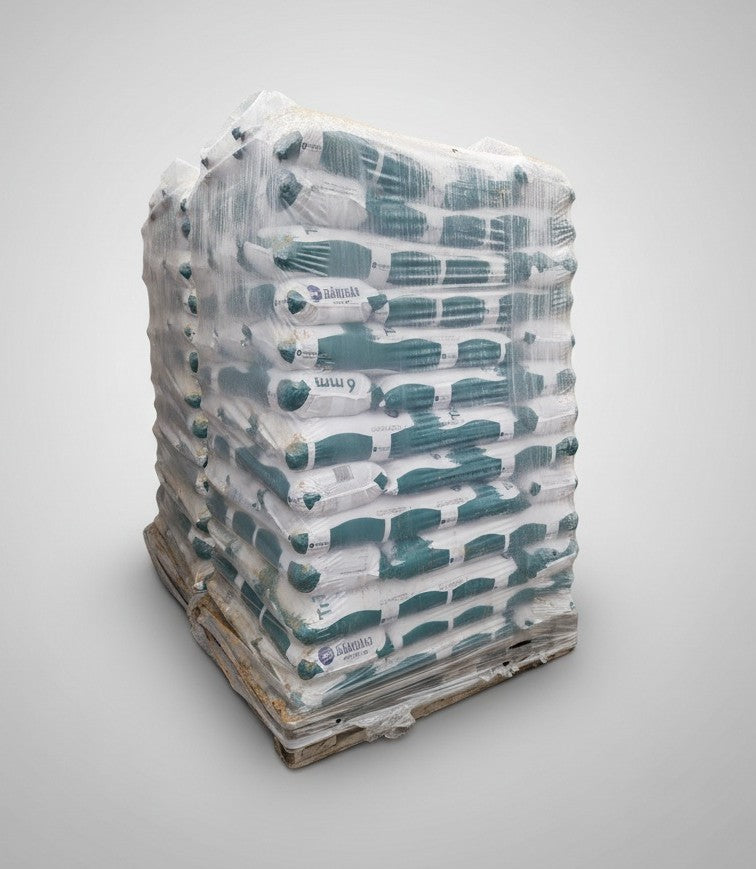 Opbevar tørt, frostfrit og på paller for at undgå fugt.