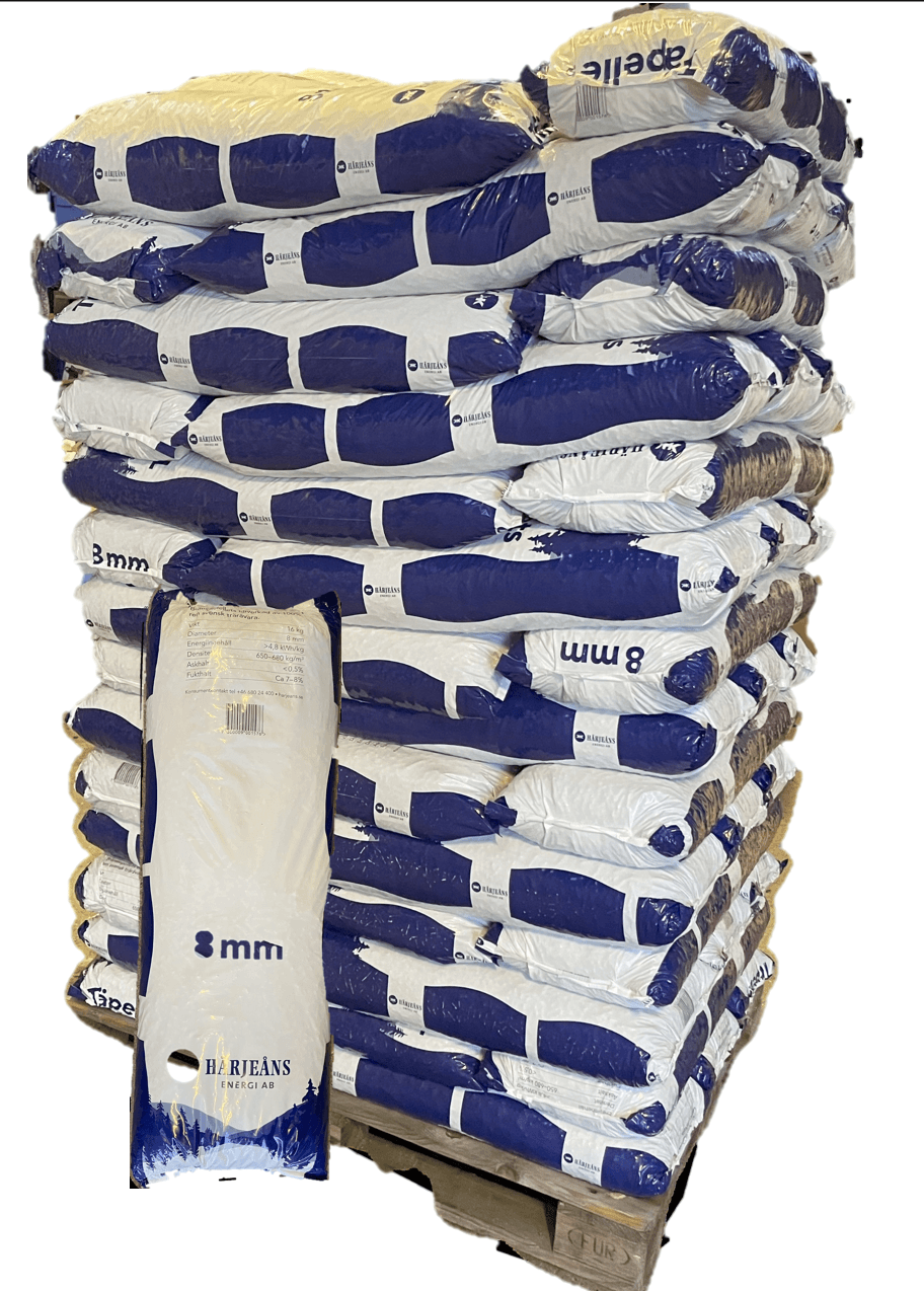 Stabile svenske træpiller i Premium kvalitet til dig, der vil have høj brændværdi, lavt askeindhold og ren, jævn forbrænding.